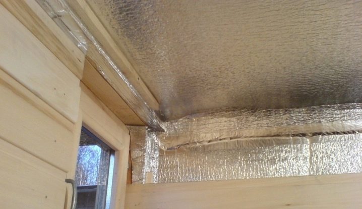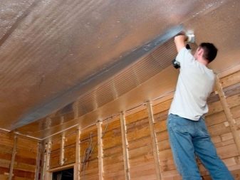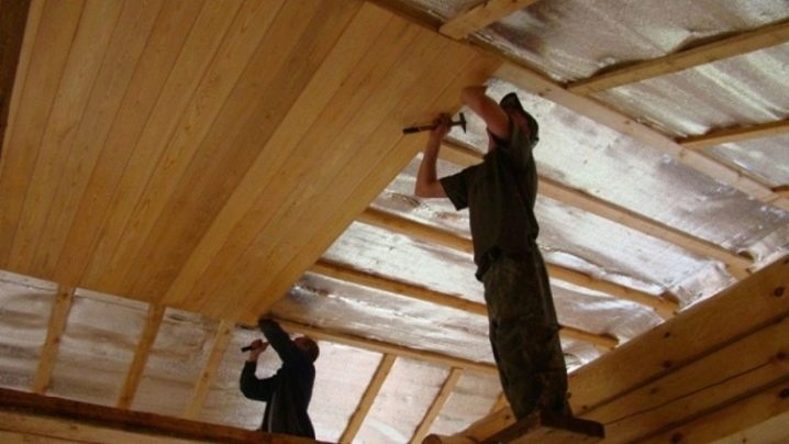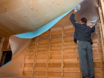 - За изолация е най-добре да използвате не обикновен филм, а да дадете предпочитание на материал с полипропиленова основа, покрита с фолио. Така ще се получи висококачествена пароизолация и няма да се събира конденз, който може да причини повреда на дървото. В допълнение, филмът трябва да бъде положен върху грубия таван, така че да има място за вентилация..