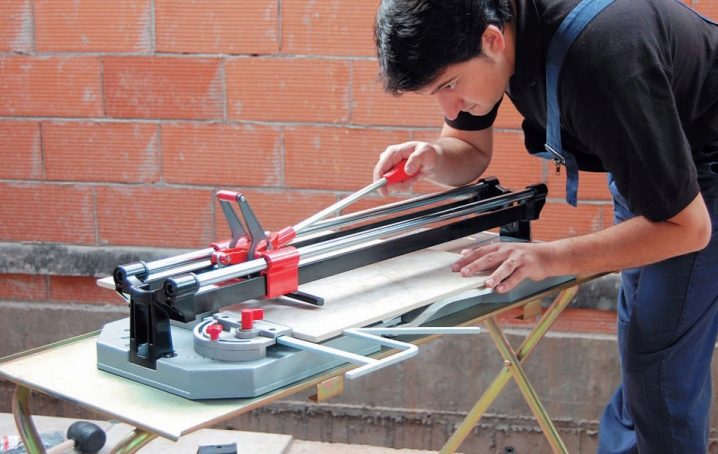 Последният елемент е за чупене на плочки. Най -популярният модел на такъв нож за плочки е лагерната машина с две водачи..