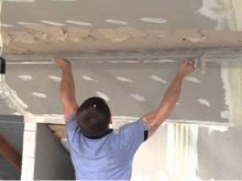 Когато стената изсъхне, върху нея се нанася грунд, специално внимание трябва да се обърне на фугите на плочите и фугите трябва да бъдат добре обработени. По време на запълването на повърхности от гипсокартон всички неравности и шевове се изравняват. Ако се планира тапетът на тавана, той се измазва, така че подовите плочи да не се виждат през тапета.