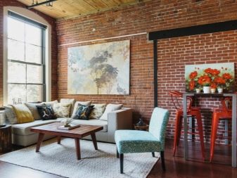 - Тухлената зидария ще бъде подходяща, ако в хола има повече от две стаи. Това се дължи на факта, че въпреки факта, че интериорът ще бъде уютен и ще наподобява стар замък, ще бъде неудобно да бъде постоянно в такова пространство. Съвременният жител не е свикнал с такива дизайни, така че върху него ще бъде упражнен натиск и се създава впечатление за липса на комфорт..