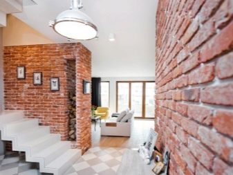 - Тухлената зидария ще бъде подходяща, ако в хола има повече от две стаи. Това се дължи на факта, че въпреки факта, че интериорът ще бъде уютен и ще наподобява стар замък, ще бъде неудобно да бъде постоянно в такова пространство. Съвременният жител не е свикнал с такива дизайни, така че върху него ще бъде упражнен натиск и се създава впечатление за липса на комфорт..