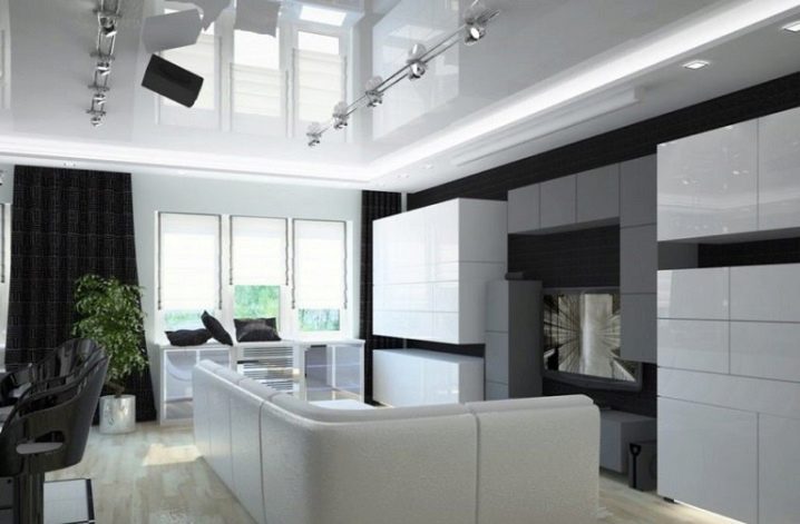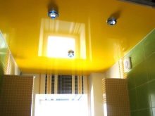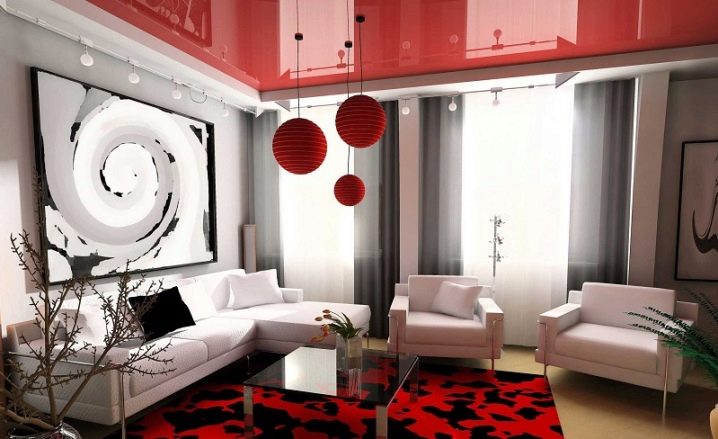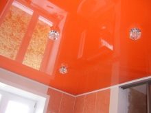 Лъскавите фолиа за таван се произвеждат в ярки наситени цветове. Много хора напразно ги избягват, защото с тяхна помощ можете да освежите интериора, да го направите модерен и елегантен. В средната лента, където слънцето грее по -малко от годината, се препоръчва да се използват по -ярки цветове в дизайна на апартамента. Но, разбира се, в интериора трябва да се въведат ярки нюанси, така че да са в хармония помежду си..