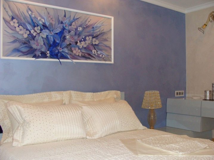 Ако спалнята е добре осветена от слънчевите лъчи, трябва да се спрете на гипсова смес от студени цветове (синьо, зелено). С малки количества ултравиолетови лъчи, които удрят стените, експертите препоръчват нанасянето на венецианския в различни нюанси на топлия спектър: оранжево, бордо, бежово, розово.