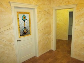 Първоначално е направена декоративна мазилка, имитираща мрамор. В този случай популярните цветови решения бяха фокусирани върху нюанса на имитирания продукт: смарагд, бял, сив, наситено кафяв..