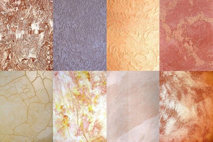 С помощта на текстурирани мазилки можете да получите обемни изображения. Такива покрития имитират цимент, камък, коркови повърхности, кора от дървета и т.н..
