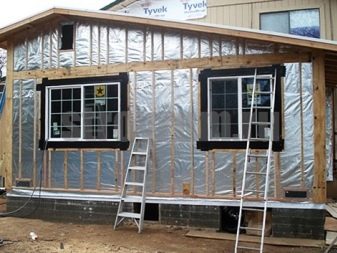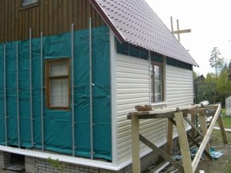 Върху изолацията се полага ветроустойчива мембрана, полага се с припокриване, фугите се залепват с лента. Освен това този слой е покрит със стенни панели съгласно технологията, описана по -горе. Между сайдинга и изолационния слой се запазва малко пространство.