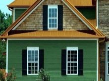 - Използвайки дори един нюанс на сайдинг, можете да добавите обем към структурата и да я направите оригинална. За да направите това, просто трябва да комбинирате сайдинг, фиксиран в хоризонтална и вертикална посока..
