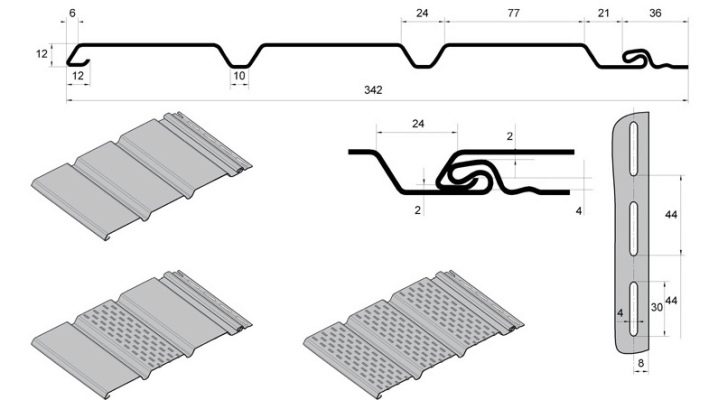 Специални панели, използвани за облицоване на хоризонтални повърхности, обикновено за подаване на надвеси за стрехи. Те са плътни и напълно перфорирани, както и с перфорации само в централната част. Поради наличието на перфорации, фасадата получава допълнителна вентилация.