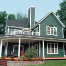 - Използването на бял или, напротив, няколко вида ярко оцветени сайдинг, ви позволява да пресъздадете уютна атмосфера в селски стил. Подходящ е за малки къщи, включително летни вили..