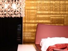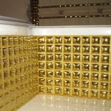За големи, просторни стаи е подходящ златен мозаечен панел със същия златен модел в центъра. Един от шедьоврите на тази комбинация е дизайнът на къщата Versace в Маями..