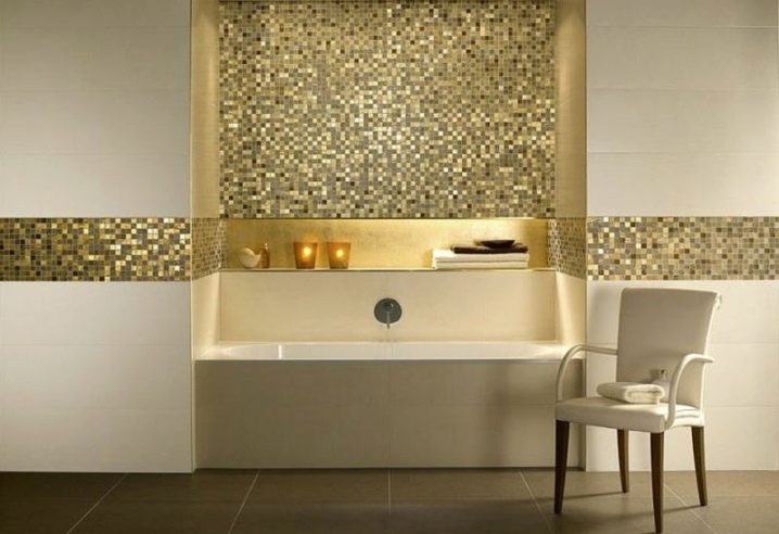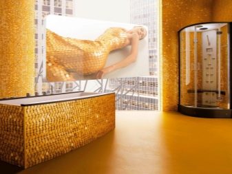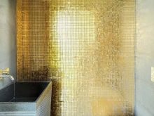 Важно е да запомните, че златната мозайка възпроизвежда изтънченост и елегантност и изисква, ако не подходящ дизайн, тогава скъпи и припокриващи се интериорни детайли..