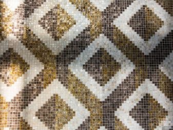В допълнение към разликите в материалите за производство, златните мозаечни плочки могат да бъдат с различни форми: класически квадратни, правоъгълни, шестоъгълни, осмоъгълни, произволни (където всяко парче е различно от другото) и кръгли. Най -често срещаните са квадратни и кръгли опции..