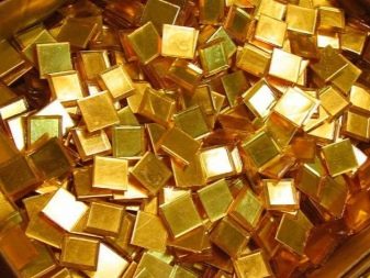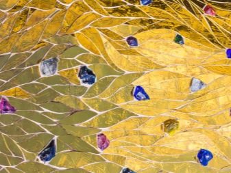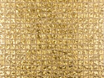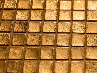 - Стъклени плочки. Броят на плочките от златно стъкло в един панел не е твърде голям, защото стъклото, обработено за злато, изглежда много закачливо и ярко.