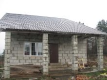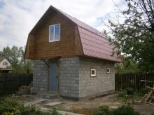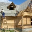 Веднага щом височината на стените достигне необходимото ниво, можете да започнете изграждането на покрива. Преди да започнете всякакви покривни работи, трябва да покриете таванните греди с дъски.. На първо място, трябва да проверите всички размери на горната корона (или ред), така че противоположните стени да са строго успоредни една на друга.. След това се монтират гредите, решетката, покривното покритие, дренажната система.