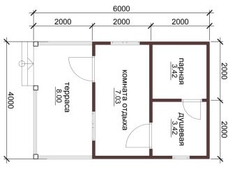 Схемата за сауна 4х6 не е само парна баня и пералня. Може да бъде оборудван с покрита веранда за комфортно прекарване през студения сезон, открита тераса за релакс през лятото.