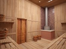 За парната баня – различни стандарти. Трябва да има поне 1 квадратен метър пространство на човек, плюс разстоянието между фурната и стените, плюс пътеки. Оптималната височина на тази стая се счита за 2-2,1 м..