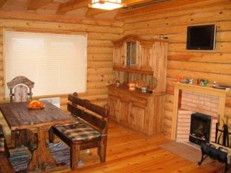 Вътрешната декорация на банята зависи само от личните предпочитания на собствениците на сайта. Това може да бъде класически дизайн с естествено дърво, могат да се използват и съвременни материали..