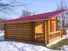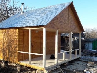 Покривът може да бъде скатен или двускатен. Вторият вариант изглежда по -ефектно, по -естетически.. Баня с двускатен покрив, освен това, ще ви позволи да използвате пространството за оборудване на стая за почивка или за съхранение на неща.