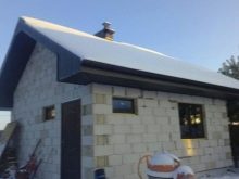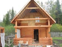 Веднага щом височината на стените достигне необходимото ниво, можете да започнете изграждането на покрива. Преди да започнете всякакви покривни работи, трябва да покриете таванните греди с дъски.. На първо място, трябва да проверите всички размери на горната корона (или ред), така че противоположните стени да са строго успоредни една на друга.. След това се монтират гредите, решетката, покривното покритие, дренажната система.