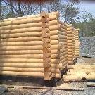 Дървеният материал по същия начин не изисква допълнително довършване, има същите свойства като дървения труп, но при издигане на дървена къща дървеният материал се монтира по -лесно и се консумира по -малко – следователно разходите за строителство се намаляват.