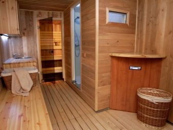 В традиционната руска баня обикновено има три стаи – съблекалня, пералня и парна баня. Но много собственици на селски къщи допълват този класически комплект със стая за отдих, басейн, вестибюл или таванско помещение..