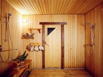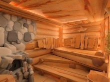 Вътрешната декорация на банята зависи само от личните предпочитания на собствениците на сайта. Това може да бъде класически дизайн с естествено дърво, могат да се използват и съвременни материали..