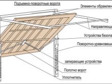 Основната разлика между гаражните врати и другите видове е, че те са вертикални и сгъваеми. Конструкцията на ролетни щори се състои от металопластични релси, които са свързани чрез подвижна брава. При отваряне на портата ламелите „тръгват“ нагоре, в зоната на кръстовището на стената и тавана, образувайки прав ъгъл и го преодоляват. Механизмът за повдигане и завъртане е много труден за инсталиране и работа; когато вратата се отвори, конструкцията се издига успоредно на тавана и освобождава входа на гаража.
