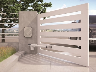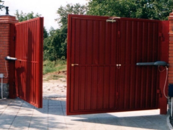 Удобно е да поставите такива порти близо до частна къща. Ако се отворят навън, не забравяйте да разчистите уличната зона пред тях от сняг. Ако се отворят към двора, снегът трябва да се почиства само в двора..