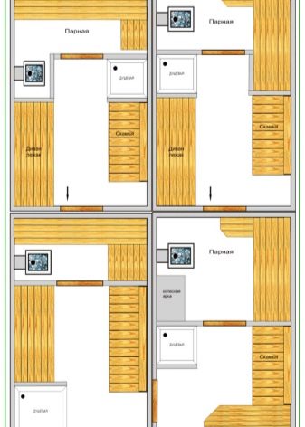 - С достатъчно количество свободно пространство в проекта на мобилна баня, можете да осигурите самата парна баня, душ и съблекалня. Такива зони по право се считат за задължителни за банята. Освен това можете да проектирате сух килер, място за резервоари за вода, прозорци. Наличието на прозорци допринася за загубата на топлина, това трябва да се има предвид.