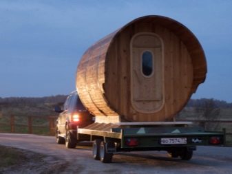 Тук основното условие е да не се превишава теглото на конструкцията на банята, масата на автомобила, с който ще се транспортира. В този случай също така ще бъде важно да се използват допълнителни опори, които да гарантират надеждно закрепване на конструкцията и да изключат възможността за люлеене на ремаркето по време на транспортиране..