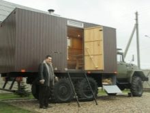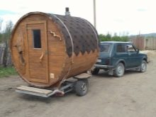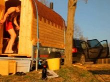 Има много различни начини на транспорт, но най -добрите варианти за това са КАМАЗ, ГАЗ, УРАЛ и т.н. Можете също така да направите мини-версия на мобилна автобан за Zhiguli. В зависимост от размера на колата, мини-ваната може да бъде 4-, 5-, 6-метрова и т. Н. Ако нямате такава кола, не бива да се разстройвате. Парната баня също може да бъде проектирана за двама или трима души, което значително ще повлияе на размера на конструкцията. Особеността е, че такава баня може да се транспортира с обикновена кола.