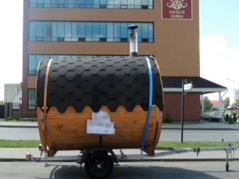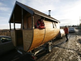 Тук основното условие е да не се превишава теглото на конструкцията на банята, масата на автомобила, с който ще се транспортира. В този случай също така ще бъде важно да се използват допълнителни опори, които да гарантират надеждно закрепване на конструкцията и да изключат възможността за люлеене на ремаркето по време на транспортиране..