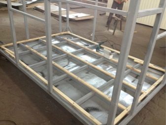 - За да улесните дизайна, можете да започнете да подреждате рамка за захранване във ваната. За това няколко метални профила могат да бъдат заварени заедно. Също така рамката може да бъде сглобена от части, закупени по поръчка..