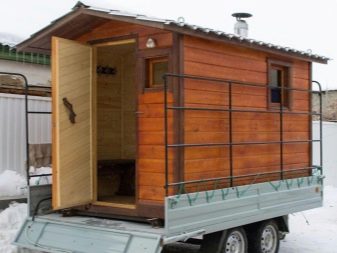 По този начин има четири вида мобилни бани. Банята може да се комбинира с автотранспорт, може да се основава на ремарке или мобилна платформа и да се използва не само като конструктивен елемент, но и за основното им предназначение. В същото време е необходимо технологично да се оборудва мобилна парна баня по аналогия с конвенционалната баня, тъй като тяхната функционалност е еднаква.