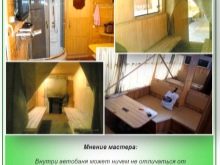 Преди да създадете структура със собствените си ръце, трябва да подготвите всички чертежи, да помислите върху ситуацията вътре в стаята. За собствениците на автомобили има уникална възможност да покажат въображението си и да поставят нещо специално вътре, а не само седалки. По този начин банята на колела има преобладаващ брой предимства пред недостатъците. Да изградите такава структура или не – изборът е ваш.!