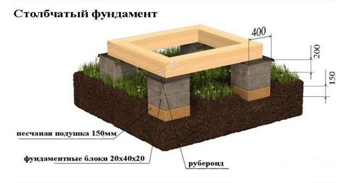 Малки бани понякога се изграждат върху колонови основи, допълнени от изсипвания, но ако почвата има тенденция да набъбва силно, тази идея не е подходяща..