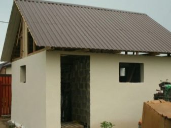 Баня с двускатен покрив е по-лесна за изграждане, отколкото с двускатен покрив, но тогава няма да е възможно да се организира пълноценно таванско или таванско помещение.