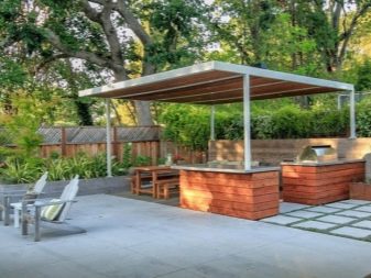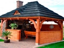 Ако има желание да се направи беседка с барбекю, тогава основата на конструкцията трябва да издържи теглото на барбекюто. Тогава е по -добре да използвате плочка основа, която ще понесе такова тегло и съответното натоварване добре..