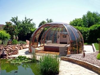 Поликарбонатните беседки стават все по -популярни, те се конкурират със конструкции от други материали. Тези летни беседки изглеждат много модерни..