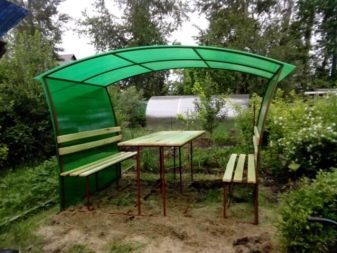 - Пропускливост на светлината. Прозрачният поликарбонат пропуска около 90 процента от слънчевата светлина, но летните обитатели предпочитат цветен поликарбонат. Вътрешността на беседката е засенчена, така че е необходима в горещ слънчев ден..