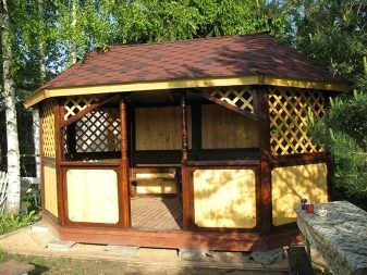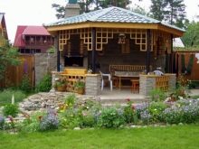 Обикновено летните жители са ограничени до беседка, в която са оградени три стени, а четвъртата стена е входът. Вътре има пейки, между които има маса. Но има и по -оригинални идеи – можете да инсталирате камина, барбекю вътре в беседката.