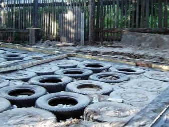 Има и много необичайна версия на основата, направена от колела, по -точно от гуми. Гумите са пълни с цимент, можете да ги фиксирате с голям метален щифт.