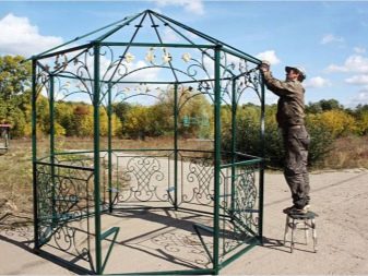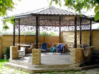 Например, колони от камък или тухла ще бъдат успешно комбинирани с ковани декоративни решетки.. Понякога много интересни преносими беседки са направени от дърво и метал..