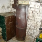- Диаметърът на комина трябва да се изчисли с голяма точност, така че скоростта му на работа да е по -малка от скоростта на изгаряне на горивото и да не изхвърля веднага нагрятия въздух заедно с продуктите от горенето навън, а да остави да загрее стените , което е основната характеристика на този тип печки. Изчислената пропускливост на тръбата трябва да бъде 2,7 пъти обема на пещта. Тоест, с горивна камера с обем 40 литра, коминът трябва да има диаметър 106 мм.