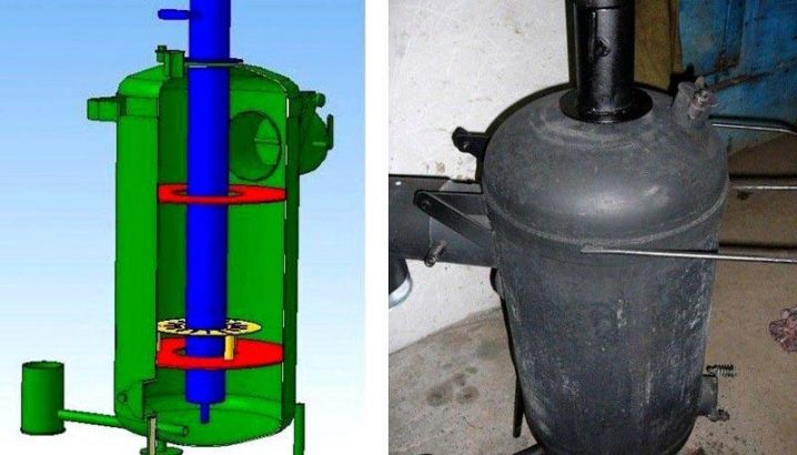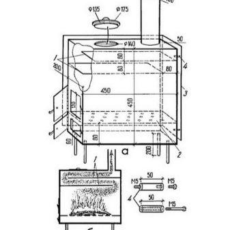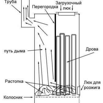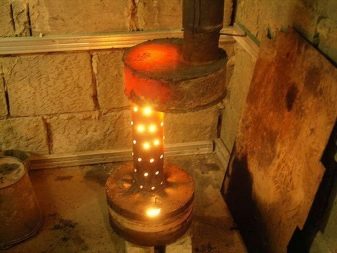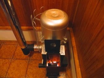 - Температурата в долния резервоар е относително ниска, горната камера се загрява до максимум, загрявайки помещението. Стените му дори могат да светят от топлината. Съответно това влияе върху избора на материал за производството на камери..