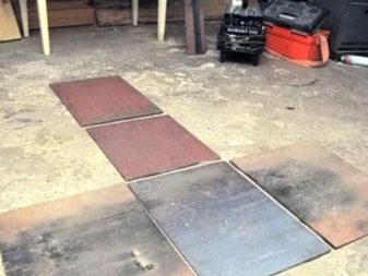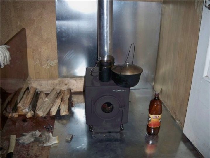 Ламарината се използва като постелка, площта е по-голяма от вертикалната проекция на печката на пода с 350-400 мм (за предпочитане 700 мм). Можете да използвате листове от други негорими материали с дебелина над 1 cm.