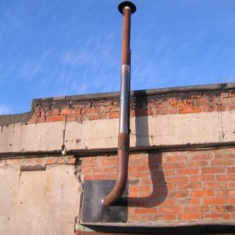 - Част от тръбата се извежда през стената на гаража, това е най -често срещаният тип.