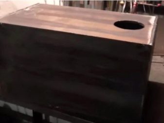 - На последния етап от работата трябва да поставите печката на краката си. Те са изработени от парчета профил, свързани чрез заваряване или завинтвани към тялото. Можете също да използвате метална кутия без предна стена (използвана като дървен навес), тухли или ковани елементи също могат да бъдат материали за основата.