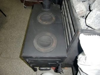 - Печка-печка се използва и като печка и за вряща вода. За да направите това, върху него е монтиран плот с горелки (обикновено е направен от чугунена печка) или резервоар за отопление на вода.