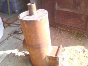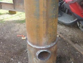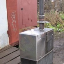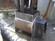 За направата на печка е подходящо парче от същата тръба с дължина 30–35 см. Печката се заварява към горната част на горивната камера и се прави друг отвор 25 х 30 см..